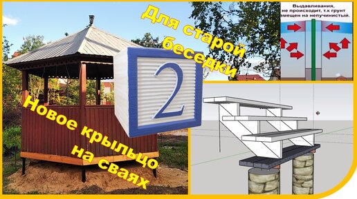 Бутованое крыльцо на сваях к беседке. Часть 2