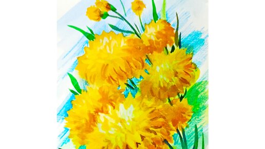 Как нарисовать цветы Золотые шары акварельными красками.