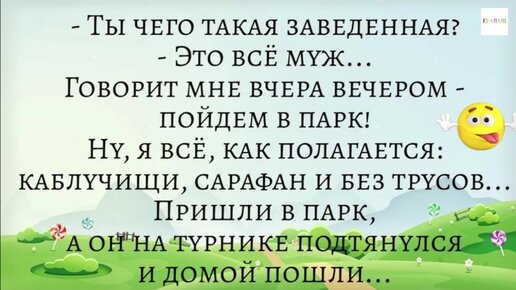 - Ты чего такая заведенная? - Это всё твой муж. Говорит мне вчера: - Пойдем в зоопарк Анекдот