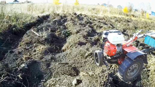 Тест-драйв на мотоблоке с самодельными вездеходовскими колёсами по вспаханной целине