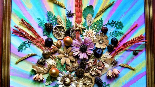 Панно на стену дерево, цветы из природных материалов.
