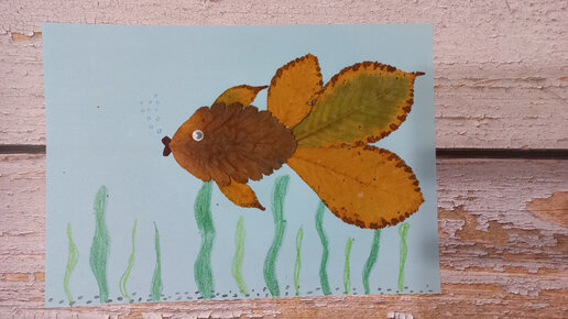 Рыбка из сухих листьев 🐠 Поделка в садик за 4 минуты