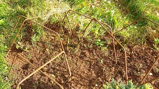Первый этап укрытия роз. Установила каркасы.