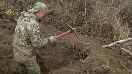 Не смог выкопать, какой-то агрегат. Пошел странный запах из ямы.