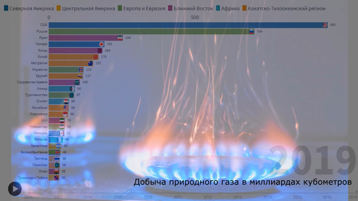 Топ 15 стран. Потребление природного газа в миллиардах кубометров.