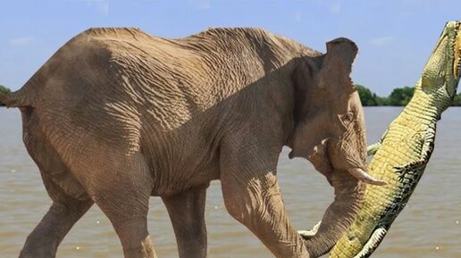 Разъярённая слониха затоптала крокодила, защищая своего детеныша