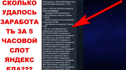 Отчет о заработке в Яндекс Еде. На сколько минут опоздал и штрафы