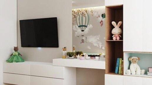 Нежная детская комната в мятных тонах и оригинальными фотообоями