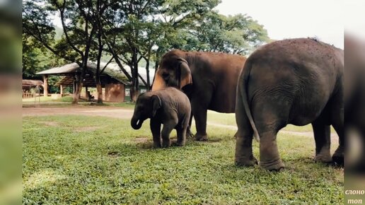 Слоник гоняется за собакой. Такой шустрый малыш, не стоит на месте.