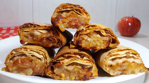 Хрустящие трубочки с яблочной начинкой.Рецепт выпечки из теста фило.