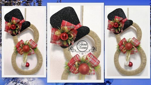 DIY☃НОВОГОДНИЙ ДЕКОР НА ДВЕРЬ из КАРТОНА и ДЖУТА☃СНЕГОВИК НА ДВЕРЬ☃