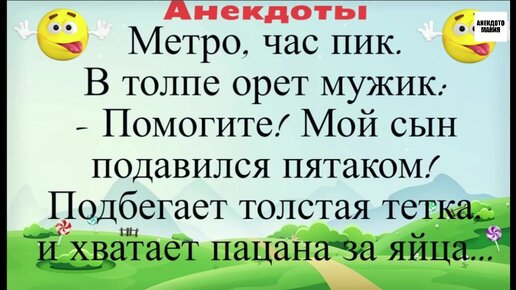 Метро. Час пик. В толпе орет мужик: - Помогите, мой сын подавился пятаком Анекдот