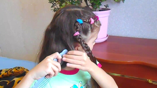Девочка в 7 лет делает себе прическу с помощью резинок!