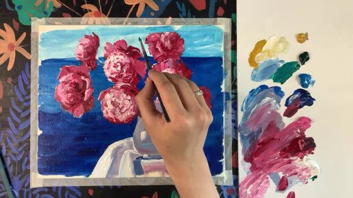 Букет Пионов / Как нарисовать пионы / результат прямого эфира