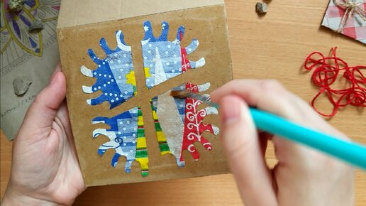 Новогодняя открытка из картона и салфеток сделанная своими руками