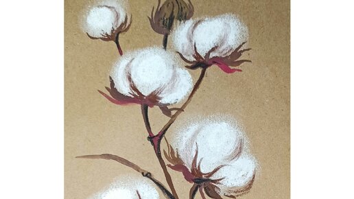 Ветка хлопчатника - рисунок пастелью и гуашью.
