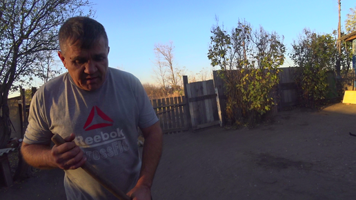 Чем занимается муж во дворе пока жена в доме , вышла проверить .