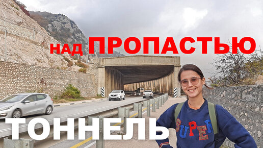 Южнобережное шоссе. Тоннель над пропастью ужас какая высота дорога к Севастополю. Часовня. Крым 2021