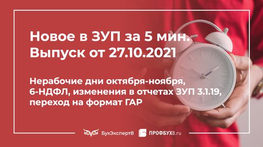 Нерабочие дни октября-ноября 2021, 6-НДФЛ за 9 месяцев 2021, изменения в отчетах ЗУП 3.1.19, переход на формат ГАР