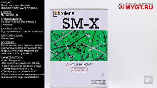Масло моторное Mitsubishi LUBROLEN SAE 5W-30 API SM 4L MZ102565B #ANTON_MYGT