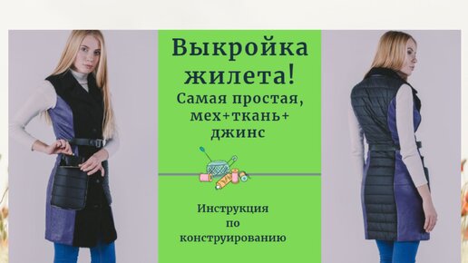 Самая простая выкройка жилета.Комбинирование Мех+Ткань+ Джинс