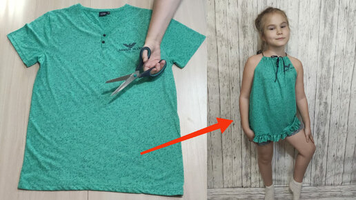 Интересная переделка старой футболки в детское платье. Быстро и просто)