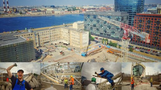 На высоте. Собрали башенный кран на набережной Невы. Вся команда в сборе.