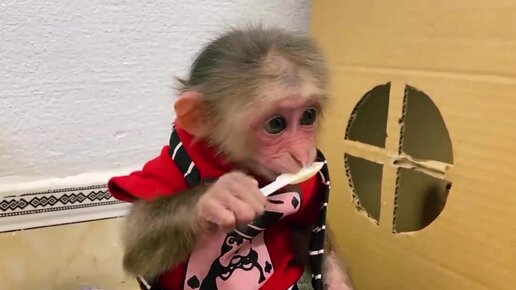 Обезьянка кушает самостоятельно продукты!! Крутышка