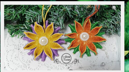 🌲ЕЛОЧНЫЕ ИГРУШКИ ЦВЕТОЧКИ из фоамирана 2022🎄DIY christmas ornaments 🎄ИГРУШКИ своими руками🎄