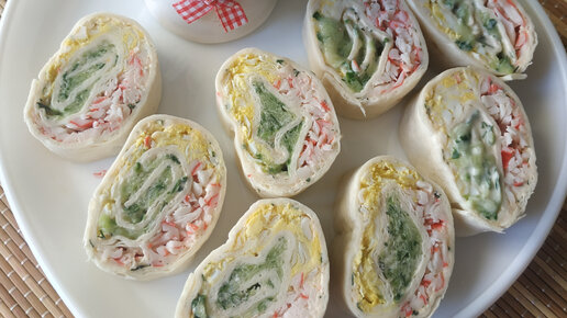 Как превратить обычный лаваш в красивую праздничную закуску - Рулет из лаваша с крабовыми палочками, яйцом и огурцом