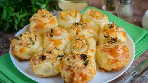 Слоёные рулетики-улитки с яйцом, сыром и зеленью. Испечь просто.
