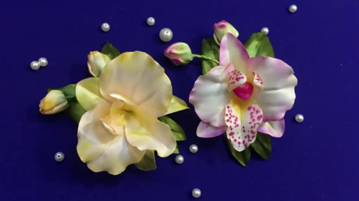 Орхидея в прическу из атласных лент. Тропическая нежность своими руками