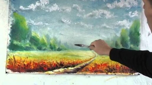 Ч2: ПОЛНЫЙ Урок живописи маслом: КАК Рисовать МАСЛОМ СОЛНЕЧНЫЙ ПЕЙЗАЖ! Мастер класс