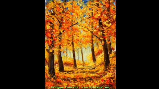 Прогулка по золотому осеннему лесу. Осенний пейзаж. Картина маслом осень.