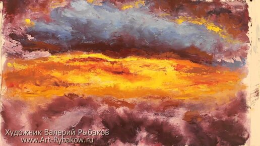 Полный мастер-класс: Как рисовать абстрактный закат. Урок живописи маслом.