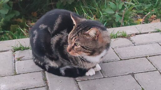 Красивый котик сидит на берегу Чёрного моря в Геленджике