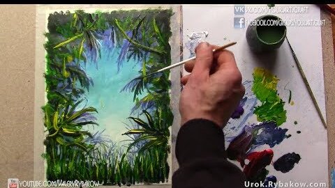 Как нарисовать джунгли. Рисуем вместе джунгли с лианами и пальмами. Валерий Рыбаков.