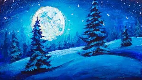 Рисуем НОЧНОЙ ЗИМНИЙ РОЖДЕСТВЕНСКИЙ ПЕЙЗАЖ! ★ Валерий Рыбаков - Как легко нарисовать зиму!