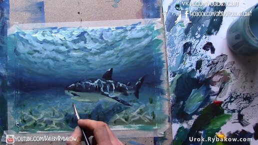Рисуем вместе ПОДВОДНЫЙ МИР, морское дно и акулу в глубине моря!! Валерий Рыбаков