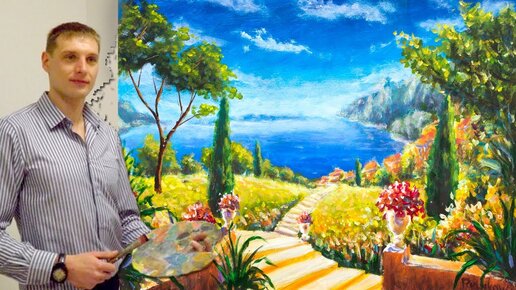 Ч.2... Роспись стен акриловыми красками мастер класс. Как нарисовать пейзаж на стене. Рыбаков