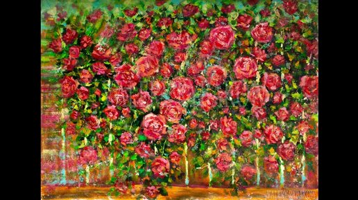 Процесс создания картины маслом и мастихином: "Летние розы на заборе", 2 Часть.