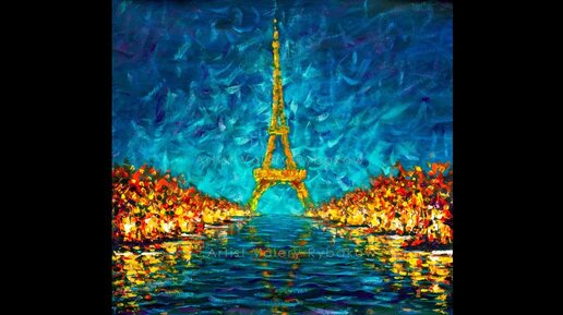Купить картину Ночной Париж Эйфелева башня отражается в реке Сене. Картина Эйфелева башня на холсте.