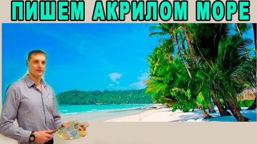 Рисуем морской пейзаж акрилом - Валерий Рыбаков. Как нарисовать море, пальмы, морской берег и волны!