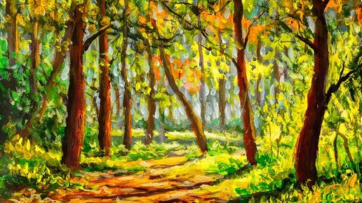 Как нарисовать СОЛНЕЧНЫЙ ЛЕСНОЙ ПЕЙЗАЖ. Художник Валерий Рыбаков. Мастер класс. Time Lapse