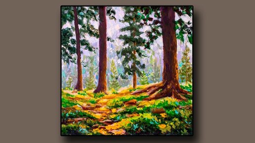 Рисуем солнечный лес - картина маслом и мастихином. Speed Painting Art Tutorial. Валерий Рыбаков