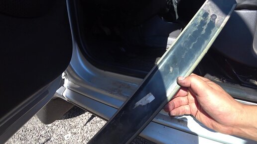 Снял накладки с порогов с Рено Дастер через 6 лет,лучше бы их не ставил вообще
