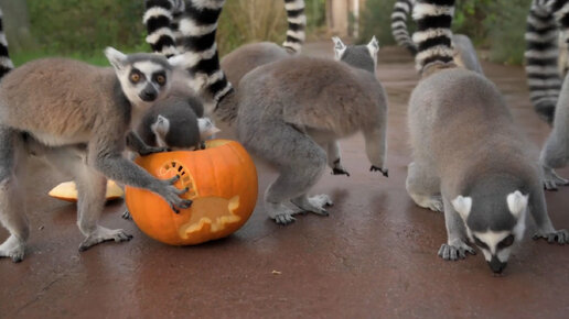 Обитателей зоопарка в Великобритании угостили резными тыквами в преддверии Хэллоуина