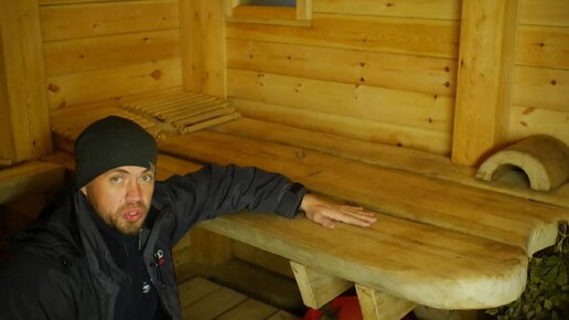 Сделал полок в бане из осинового бревна. Показываю что с ним стало за год эксплуатации