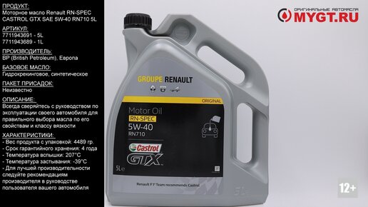 Моторное масло Renault RN-SPEC CASTROL GTX SAE 5W-40 RN710 5L #ANTON_MYGT