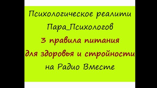 🎙️ Реалити 3 правила питания для здоровья и стройности.